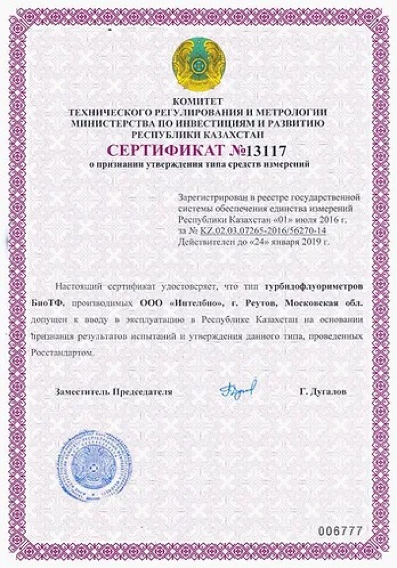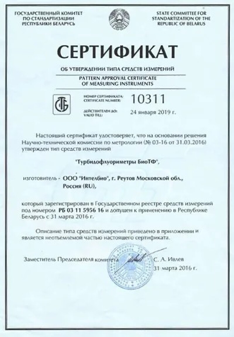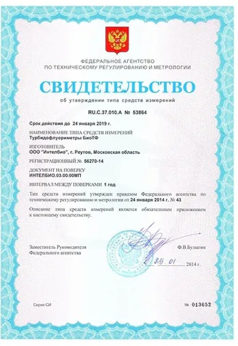Turbidofluorimeter BioTF, GOST-R № 56270-14.